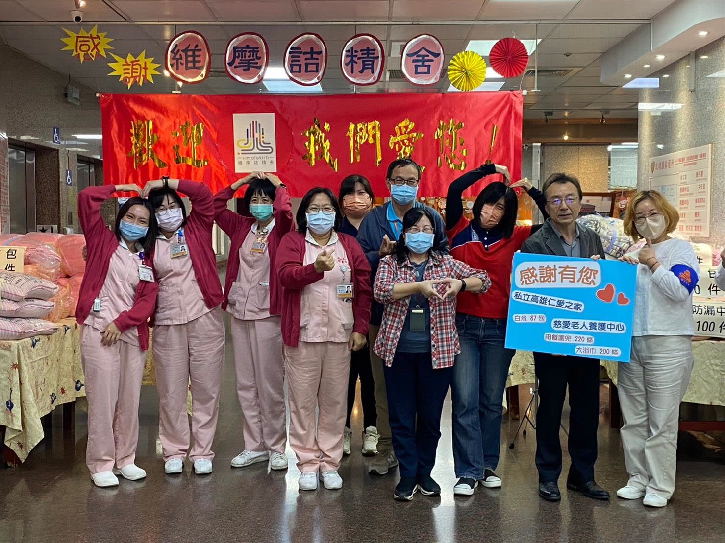 本家今年在冬至的前夕,再次獲得#維摩詰精舍#的愛心物資,每件品項,都是帶著維摩詰師兄師姐的祝福與關愛,除了白米87包外、實用的床包、枕套、防水中單、毛毯等寢具,還增加了圍兜、浴巾,,讓接受本家照顧的每一位住民,都能感受到來自社會善心人士的溫暖。