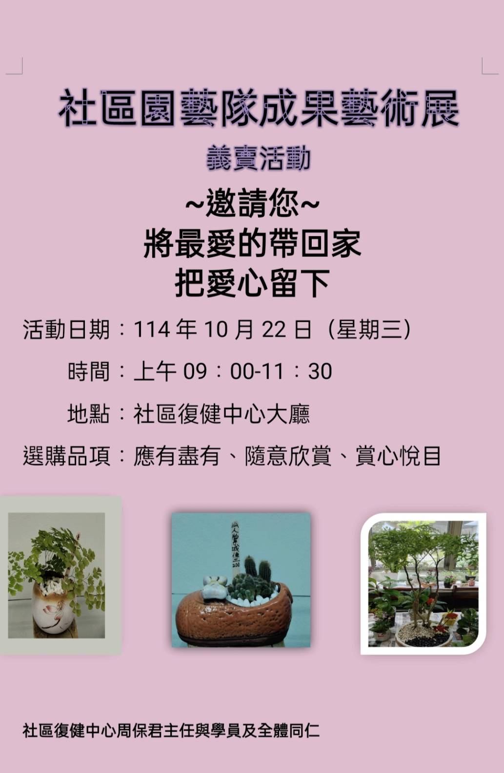 社區園藝隊成果藝術展 & 愛心義賣活動!