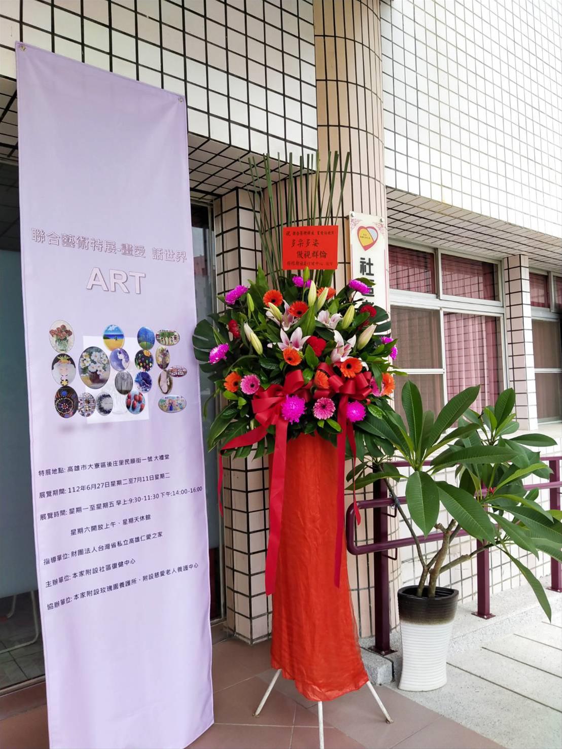 本家於112年06月27日上午舉行第一屆「聯合藝術特展-畫愛話世界」開幕式茶會,誠摯地邀請大家到此藝術空間,共賞精采的油畫、水彩畫、棉紙撕畫、手工藝、編織、拼布、植物造景等作品;琳琅滿目,美不勝收。一踏進展覽會場,首先映入眼簾的是整個展場美輪美奐、潔淨清爽,這是來參展的住民所述…,作品看起來從內心有一股暖流與感動;這是一位年過80的長輩及多數參展者所言…。
