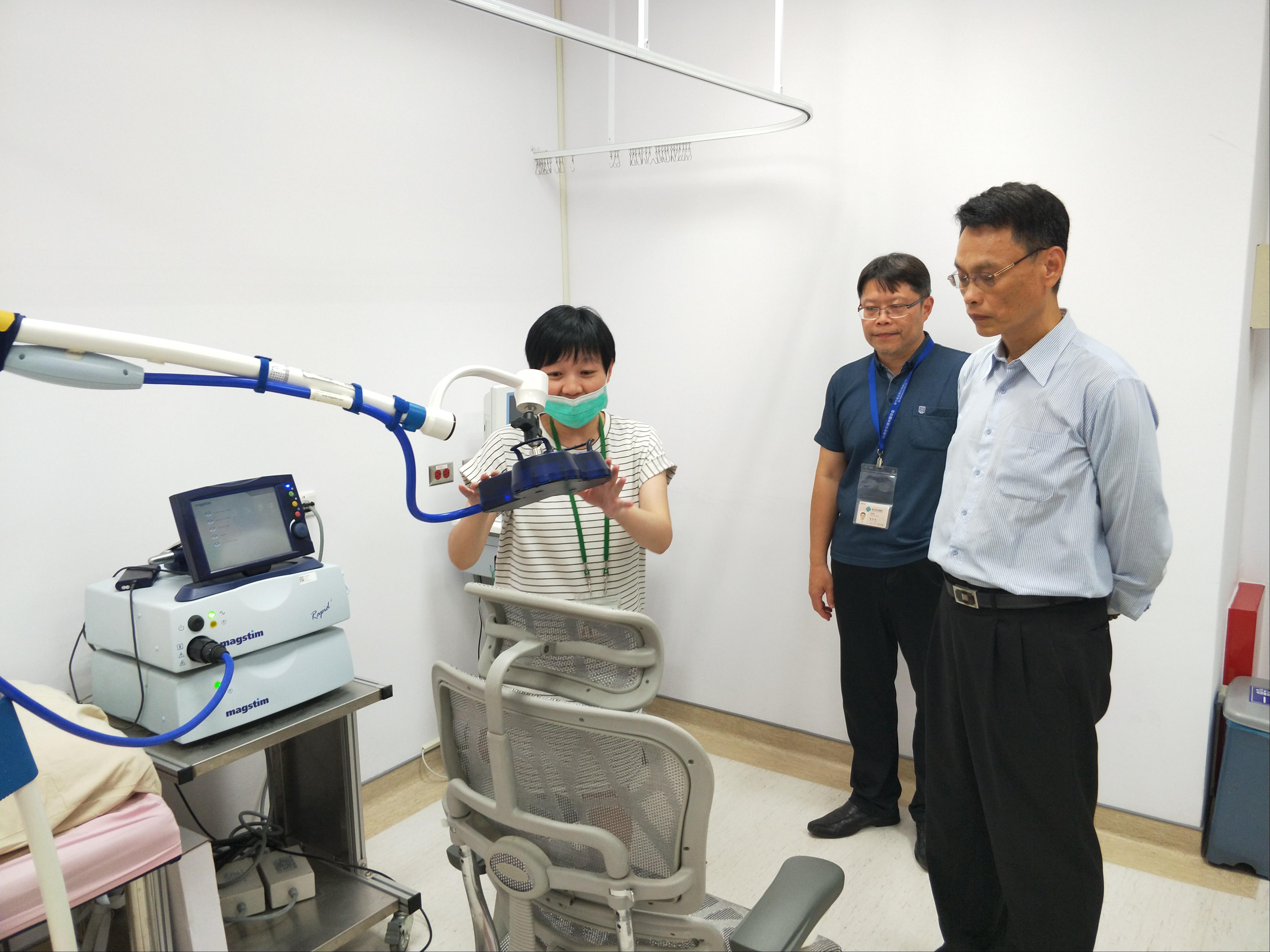 上一世紀,二十世紀對心理健康造成重大影響的重大精神疾病(SPMI)也是附醫現在最主要的病人族群,如思覺失調、躁鬱症等上述疾病,因治療模式及人口結構改變,需求逐漸穩定,甚至出現供過於求的趨勢。現今二十一世紀,影響人類心理健康已是3D疾病(Depression憂鬱症、Dementia失智症及Dependency成癮症)等為主流,而r-TMS在國內外已陸續有研究報告證明對上述的3D疾病有良好的療效。邱院長表示因應醫療供需的改變,未來附醫規劃陸續導入新科技、新的治療模式,同時提升同仁們對診治3D疾病的知識及技能,以滿足民眾醫療的需求,促使大眾心理健康。