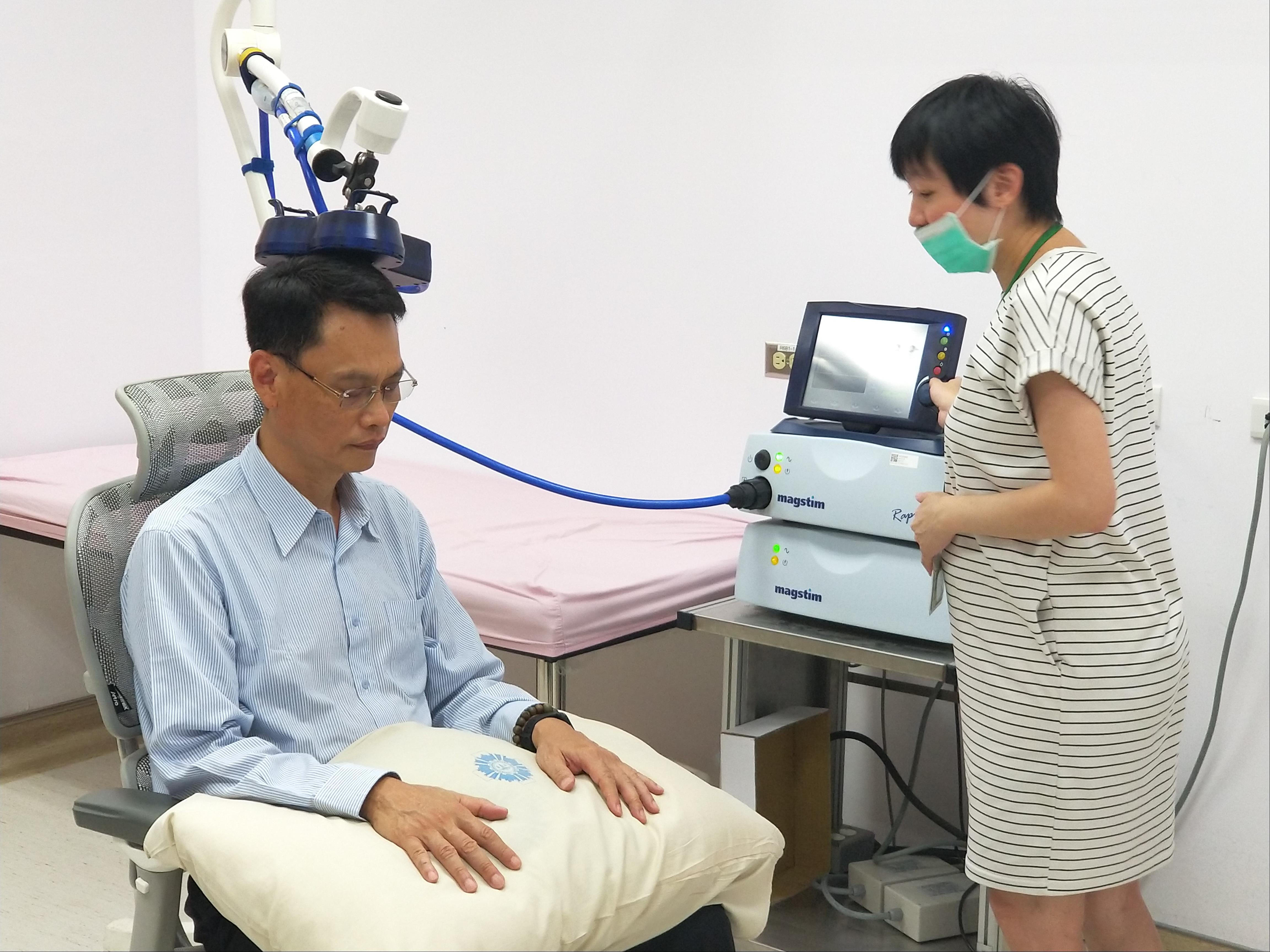 重覆經顱磁刺激術(r-TMS)在107年8月通過了衛生署用來治療對藥物治療效果不佳的憂鬱症患者的使用許可,國內如台北榮總、台大醫院、中國醫大附醫、台中榮總系醫學中心都已陸續引入列為臨床標準治療模式。高雄地區阮綜合醫院於今年引入。明年附醫、高雄長庚精神部及其它醫學中心都將引入r-TMS來對憂鬱患者提供更完善的醫療服務。