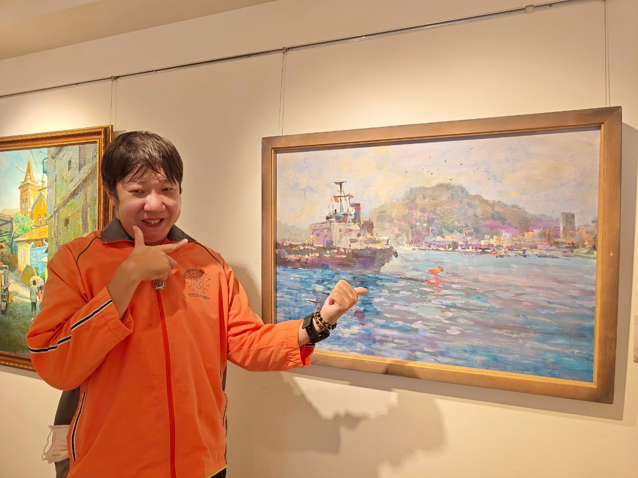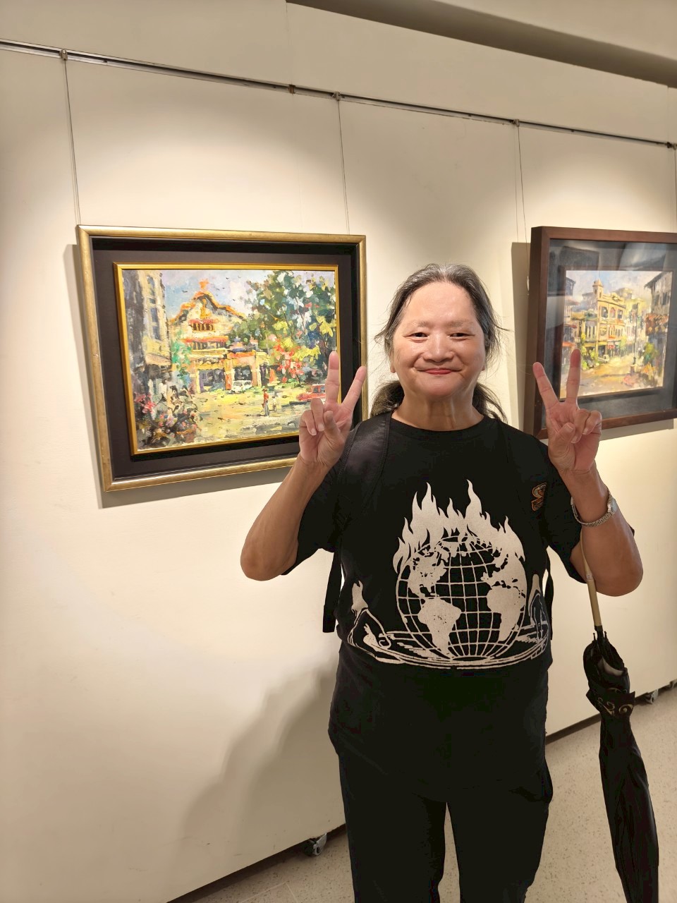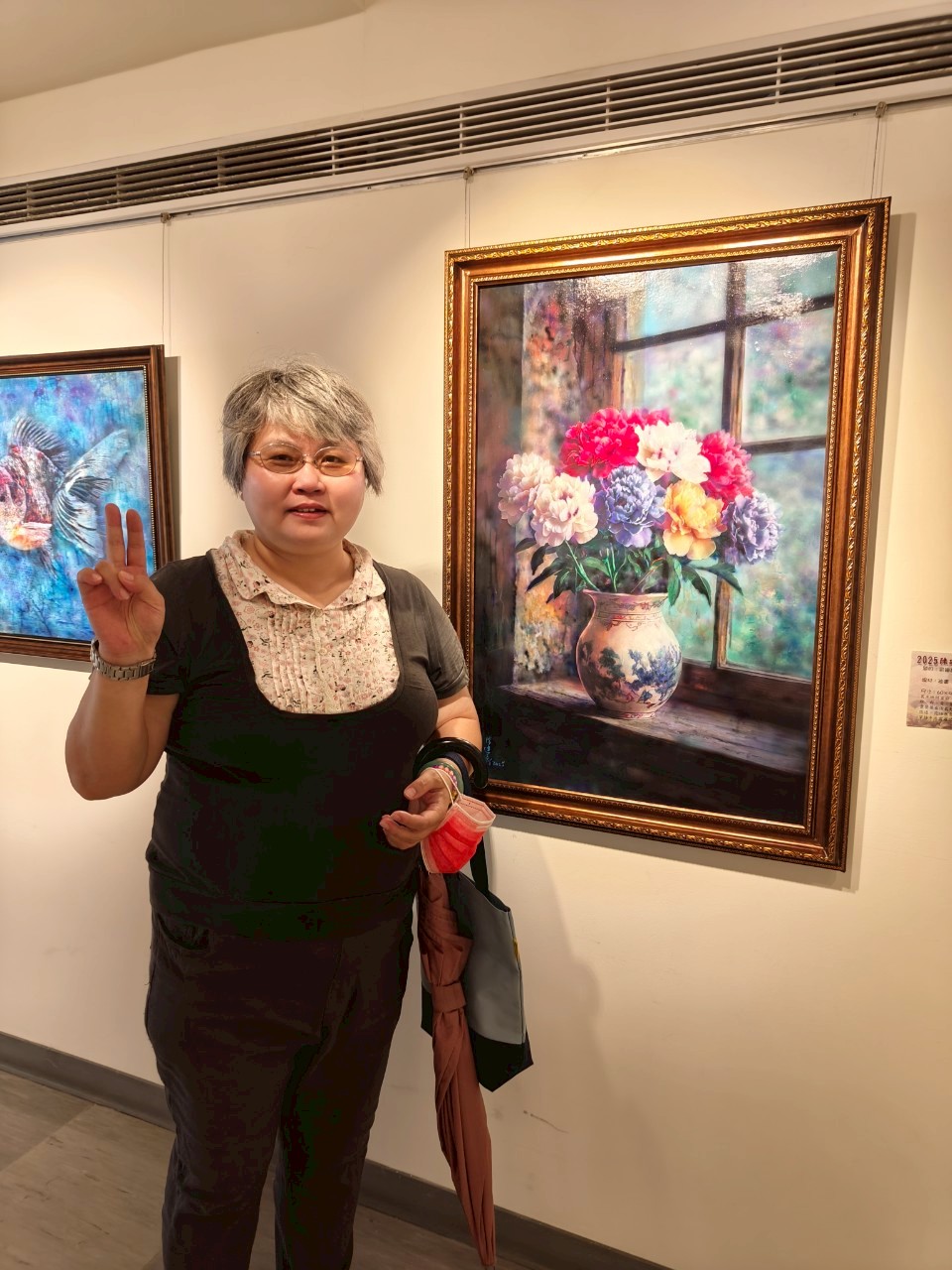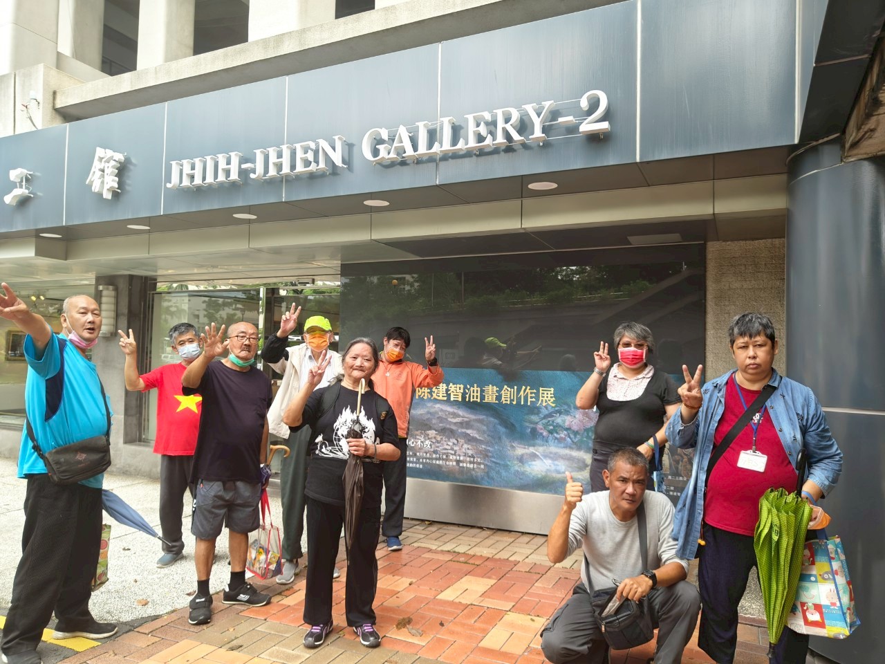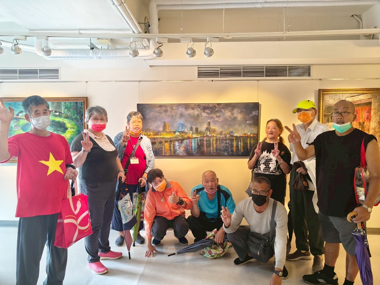 展廳內的環境很舒適很清靜,住民們紛紛坐在凳子上,欣賞著布置在周圍的畫作,並享受著此刻的時光,彷彿時光帶著我們穿梭在每一幅畫中。此次帶領住民參觀展覽,不只是一次短暫的參觀活動,更是一種心理復健的延伸。藝術的形式多樣,不需過多言語,就能喚醒感受與想法,心理學研究指出,藝術創作與欣賞能刺激大腦的情感中樞,有助於減輕焦慮與抑鬱感。在康家住民身上,接觸這種外在力量顯得特別珍貴,透過此次的藝術旅程,不僅為他們提供了一個欣賞藝術的空間,更像是打開社會之門的一把鑰匙,讓他們感受到自己是這座城市的一部分,同時也提醒著我們,藝術可以落地、生根、並為人們帶來力量的生活元素,無論是專業藝術家還是住民,都能在藝術的世界找到自我價值,或許在未來的某一天,他們之中的某一位,會再次走進這裡,不只是觀眾,更是展覽的創作者。(文:康復之家/陳惠文社工員)