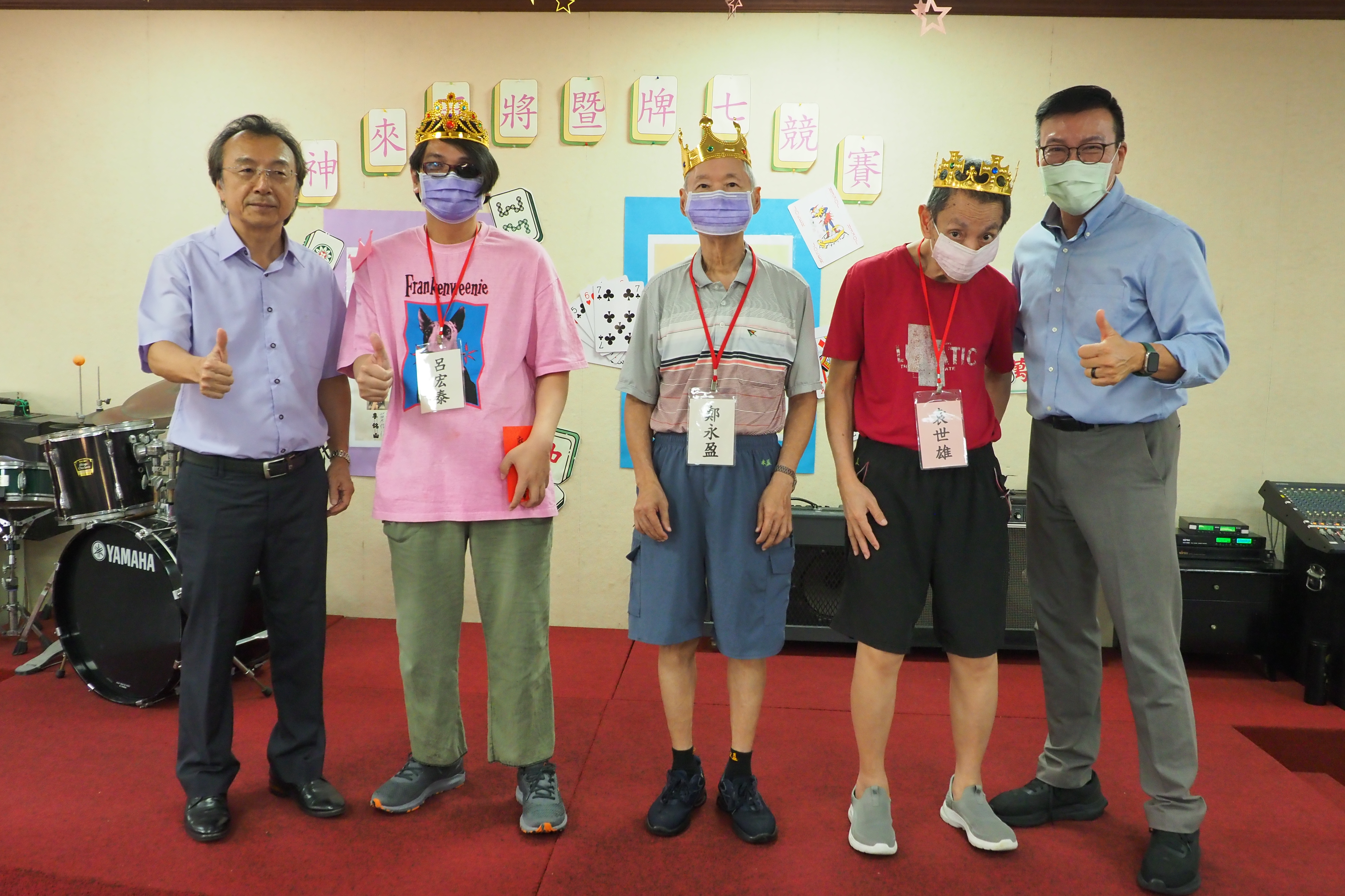 今年比賽最溫馨的亮點,就是董事長與執行長經過一番競技後,雙雙奪下第一名,但兩位長官隨即將冠軍榮耀遞補給家友,讓家友成為最終的冠軍,象徵大家彼此的鼓勵與肯定。比賽結束,現場特別邀請董事長與執行長親自為麻將、牌七、麻將友誼賽冠軍的家友戴上閃亮王冠。台上的家友驕傲又開心,手裡捧著獎金,臉上全是自信和幸福!