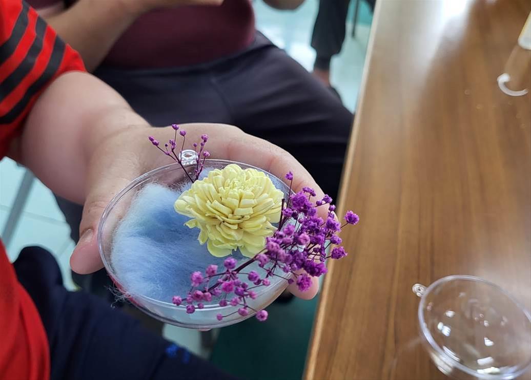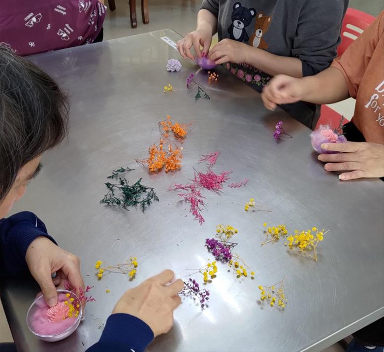 學員們在職能治療師帶領下,自己挑選乾燥花的樣式、進行配色與設計,最後黏上美麗的緞帶與蝴蝶結,完成了獨一無二的手工乾燥花球。學員們開心地表示,美麗的乾燥花作品令人心情愉悅,希望收到乾燥花球的親人能感受到他們內心的感謝,也希望自己和親人們都能抱著感恩的心,更快樂地迎接每一天。(文:慈惠醫院/職能科/江旻娟職能師)