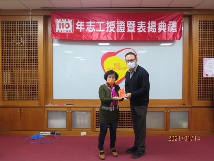 仁愛之家志工大哥大姊服務於敬老所、慈愛老人養護中心、玫瑰園養護所與慈惠醫院。志工的無私奉獻,在無數的日子裡前來服務機構長輩、住民與病人。仁愛之家感謝您們的付出,因此今年度於01月14日舉辦授證暨表揚典禮。由志工督導們依據服務時數與服務狀況選出標竿獎與績優志工,期許能稍微慰勞志工夥伴一年來之辛勞。