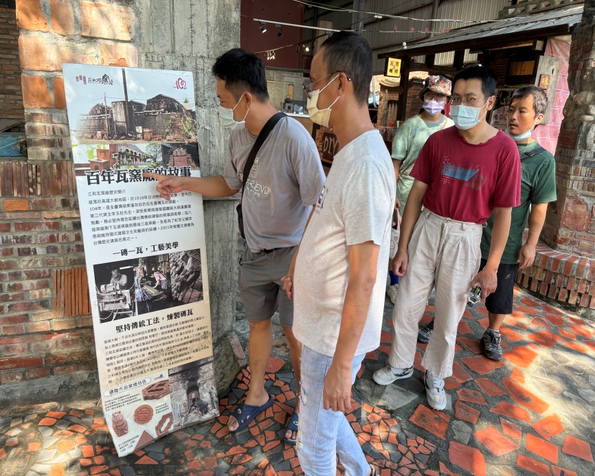 今天是個天氣晴朗適合出遊的好天氣,學員們顯得雀躍與興奮,在完成人員清點及整備事宜的檢查後,由工作人員簡潔地向學員說明當天的行程規劃、路線及相關安全事項後,隨即搭乘大眾交通工具前往今天的目的地之一三和瓦窯(順安號煉瓦工廠)。