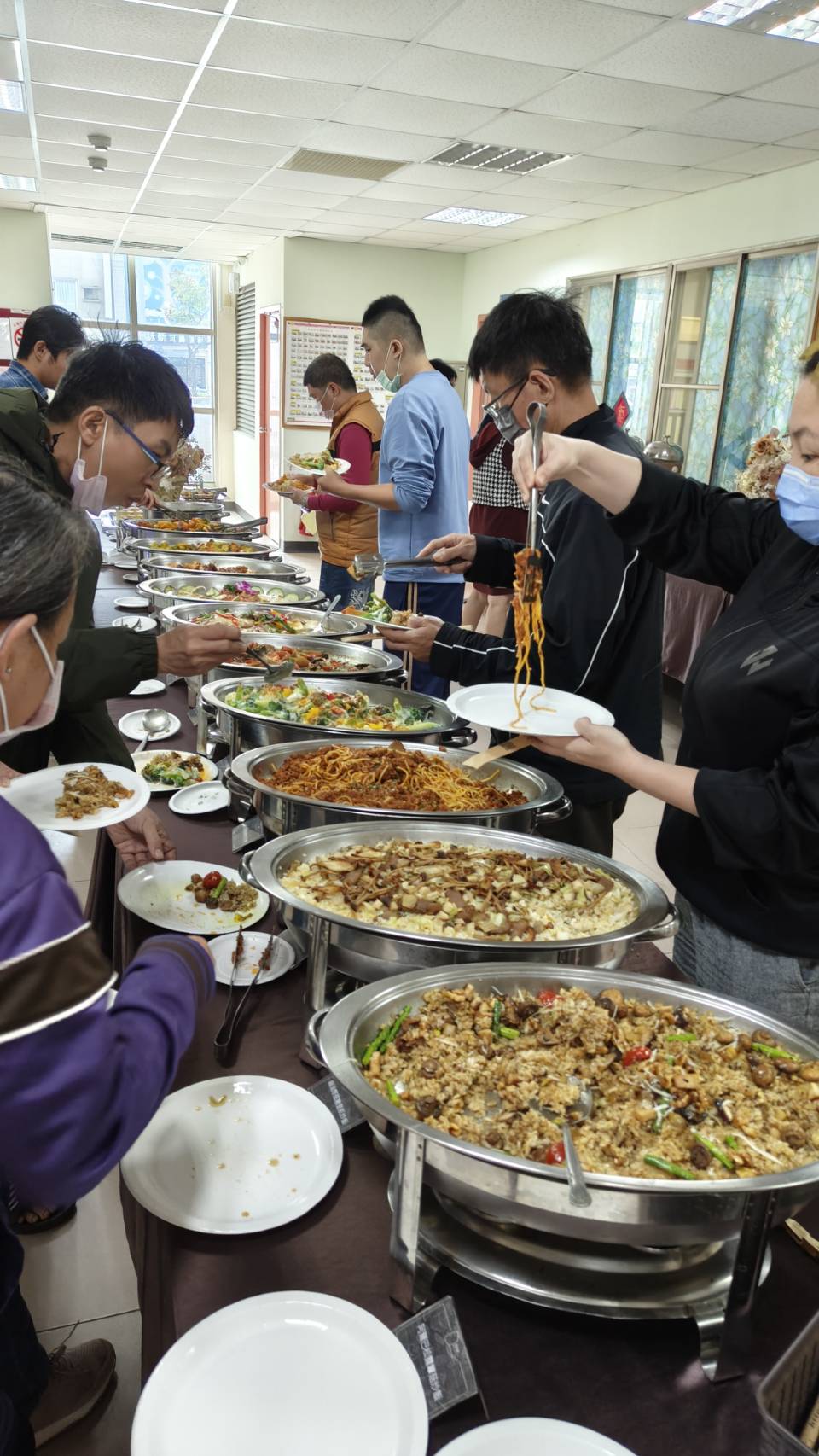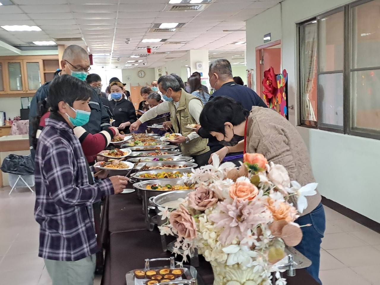 學員們期待宴會這一天的到來,歡心地先將會場布置的美輪美奐、喜氣洋洋…媲美西餐廳氛圍。當天在大家齊聲歡唱:歡鑼喜鼓得隆咚鏘,鈸鐃穿雲霄,… 祈祝年冬收成好遊子都平安…展開宴會的序幕。董事長給學員發贈一人一包的壓歲錢---恭喜!恭喜!新年快樂:平安喜樂、身體健康、財源滾滾…歡喜恭賀聲,滿堂盡歡。