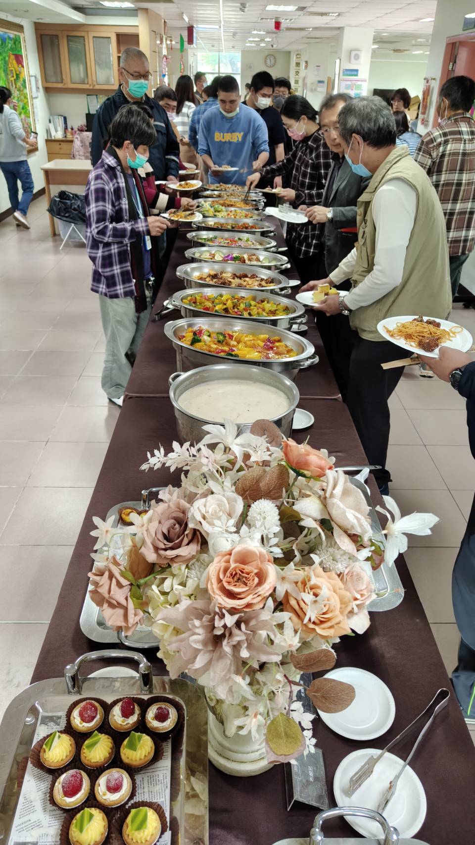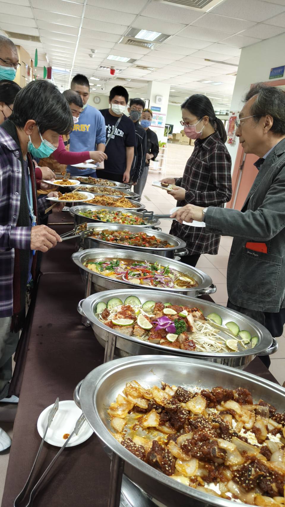 接下來…今天的美食以西餐為主共有18道餐點、甜點、飲料及水果;美食當前大家垂涎欲滴,由董事長邀請大家開動用餐-來自各單位主管與醫師們也與我們歡聚一堂共餐-賀新年大團圓;用餐之際,學員也隨著柔和音樂高歌一曲;此起彼落感謝董事長與執行長給我們豐盛的大團圓Buffet美食與金蛇吐寶發紅包,真是熱鬧非凡又溫馨的韶光。