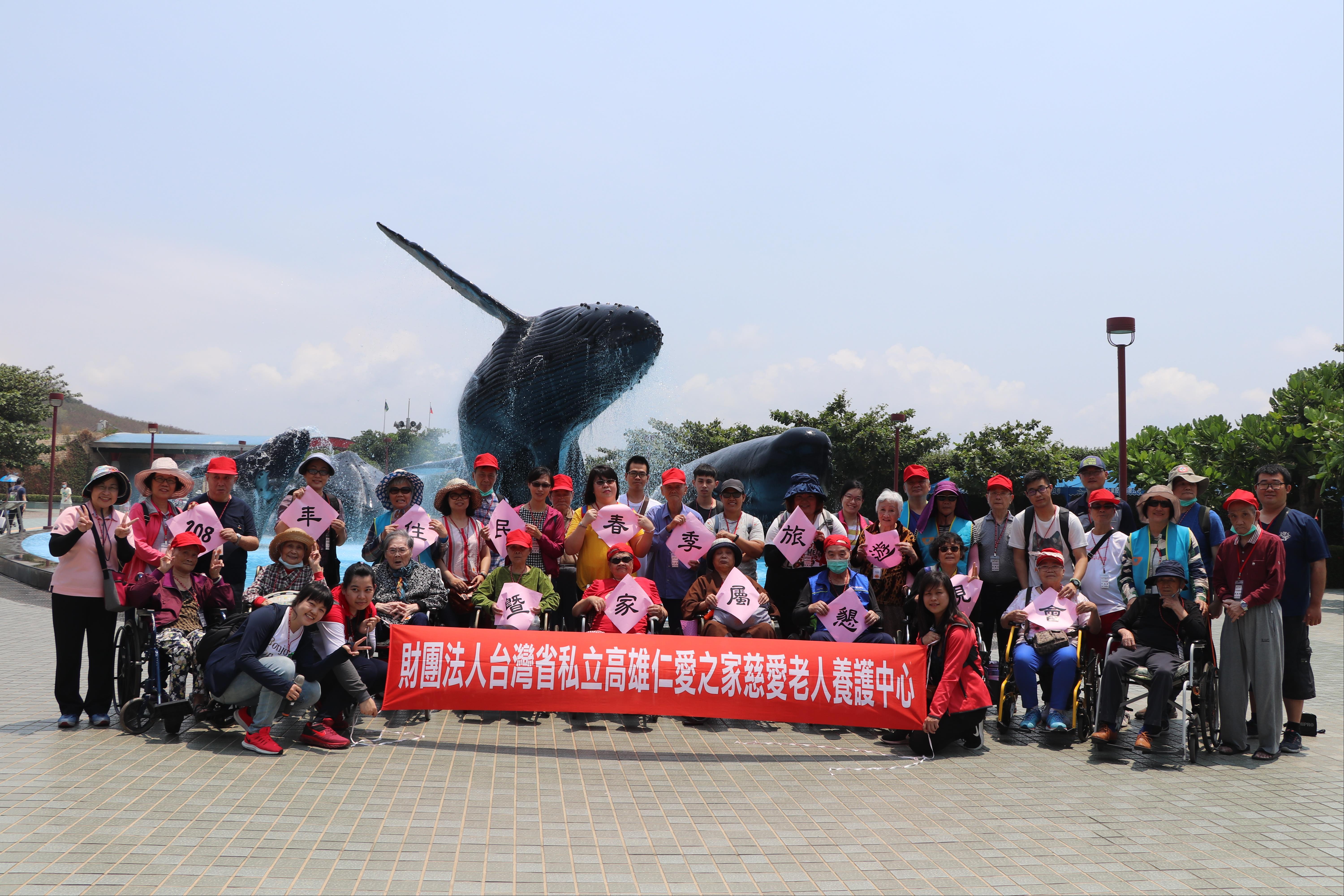 4月23日早上七點多,一進門已看到幾位長輩穿戴整齊等著出門旅遊。在遊覽車上兩個多小時的歡唱時間後,抵達【國立海洋生物博物館】,迎接我們的是晴空萬里的好天氣。在鯨魚廣場留影紀念後,一行人到館內的休息室享用東港知名的“肉粿”,稍作休息後即開始今天的參觀行程。