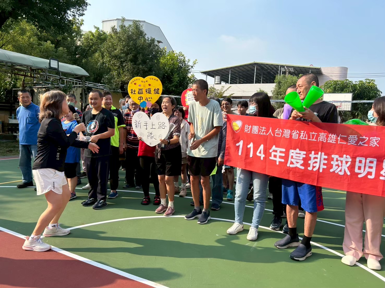 為促進精神康復者身心健康、培養團隊合作與社交互動能力,財團法人台灣省私立高雄仁愛之家舉辦排球明星賽活動,並由精神康復者們與工作人員共同組隊參與競賽。