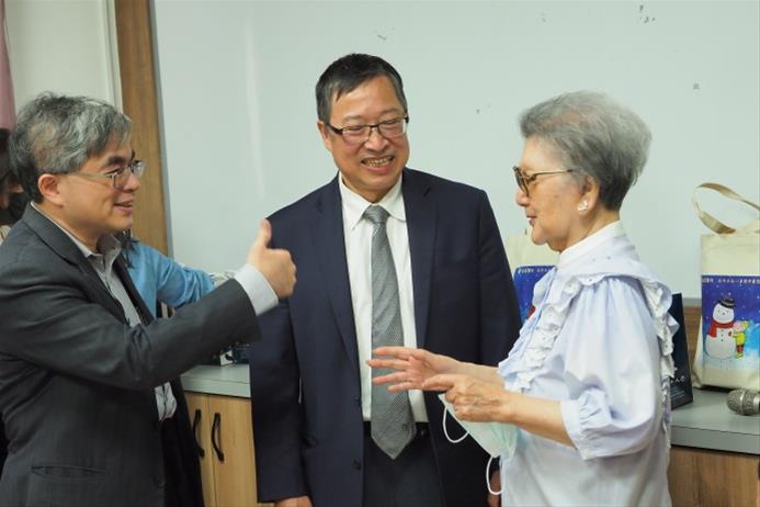 陳彥旭主任、余明隆副校長及張雅玲榮譽董事長相談甚歡。 -
