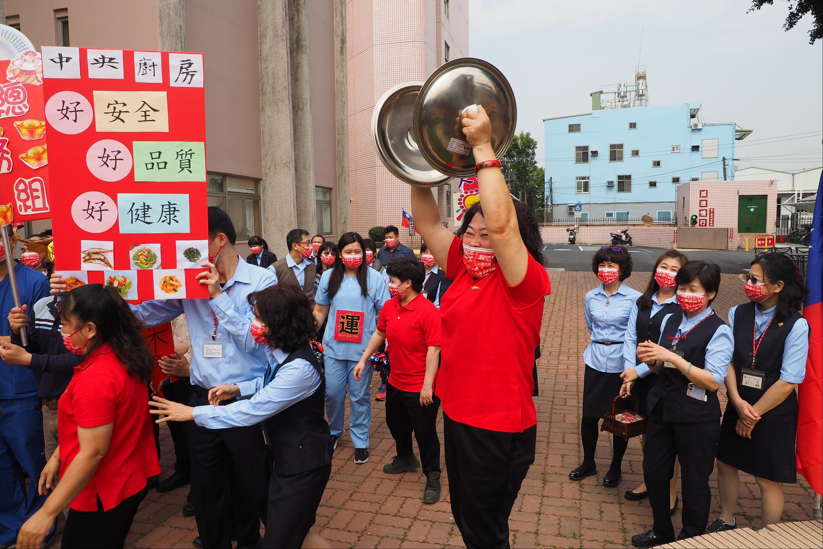 團拜過程中單位創意十足自創表演助興,慈惠醫院院長狀元財神帽打頭陣,高高舉起紅布條祝賀詞「大家恭喜」,再有中央廚房鑼鼓敲打助陣,現場一片歡喜,接續有慈愛老人安養護中心向大家拜年,齊唱恭喜恭喜,連接幾個單位都有年味的新春祝賀,祝福邁向2021,本家所屬業務單位好品質服務再延續,讓有需要的民眾都能得到最好的照顧。