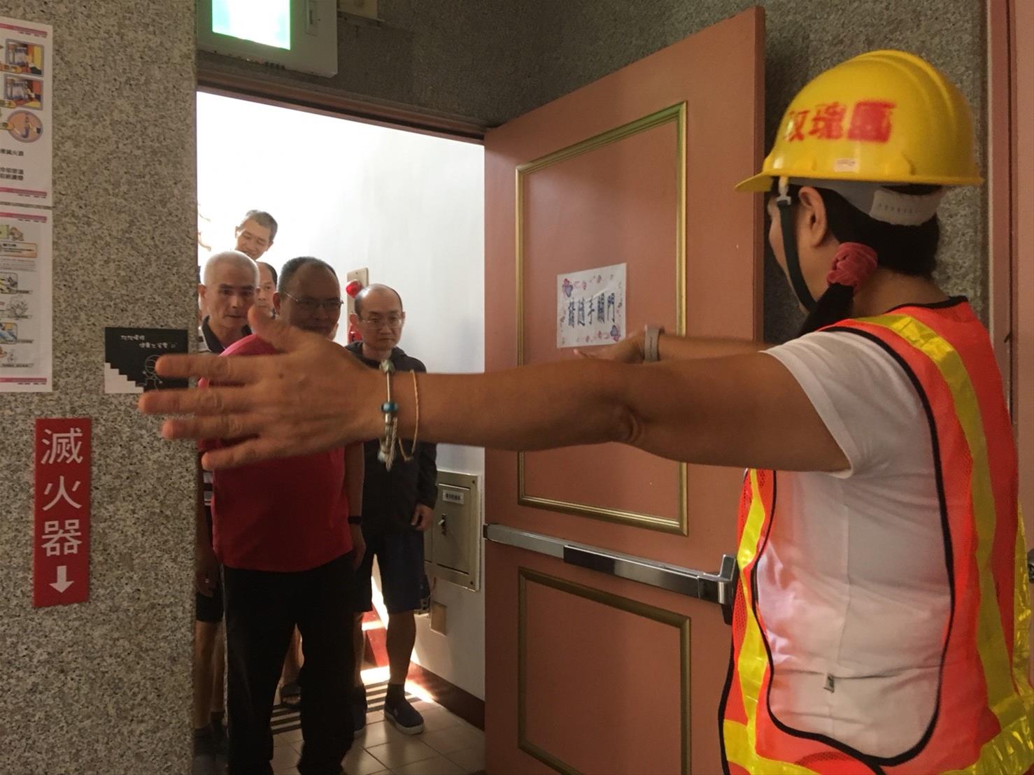 圖三、引導家友往大門離開建築物至集合地點避難。 -