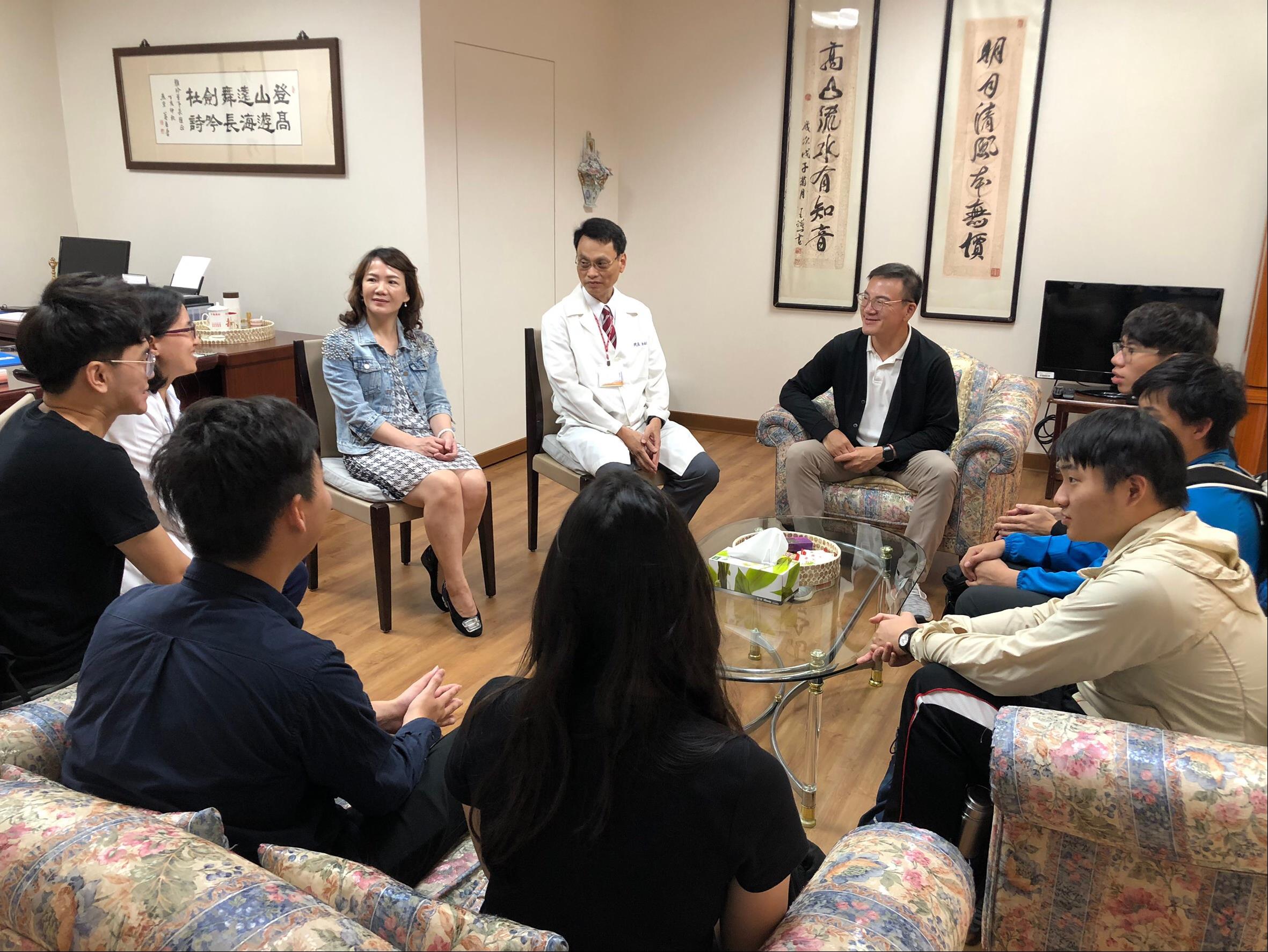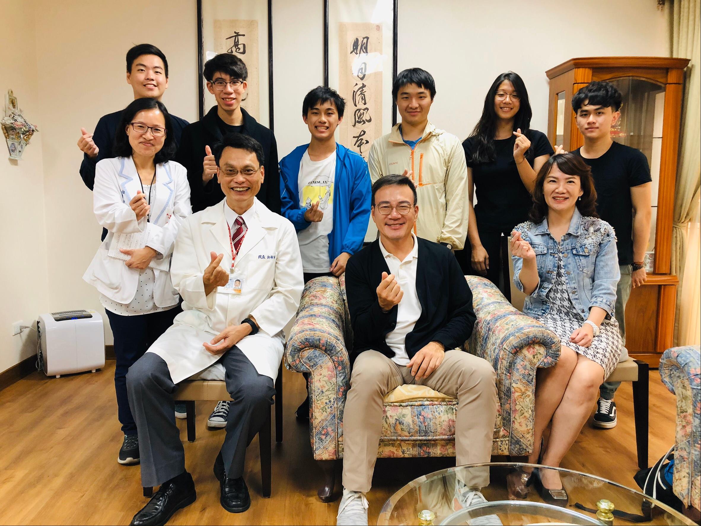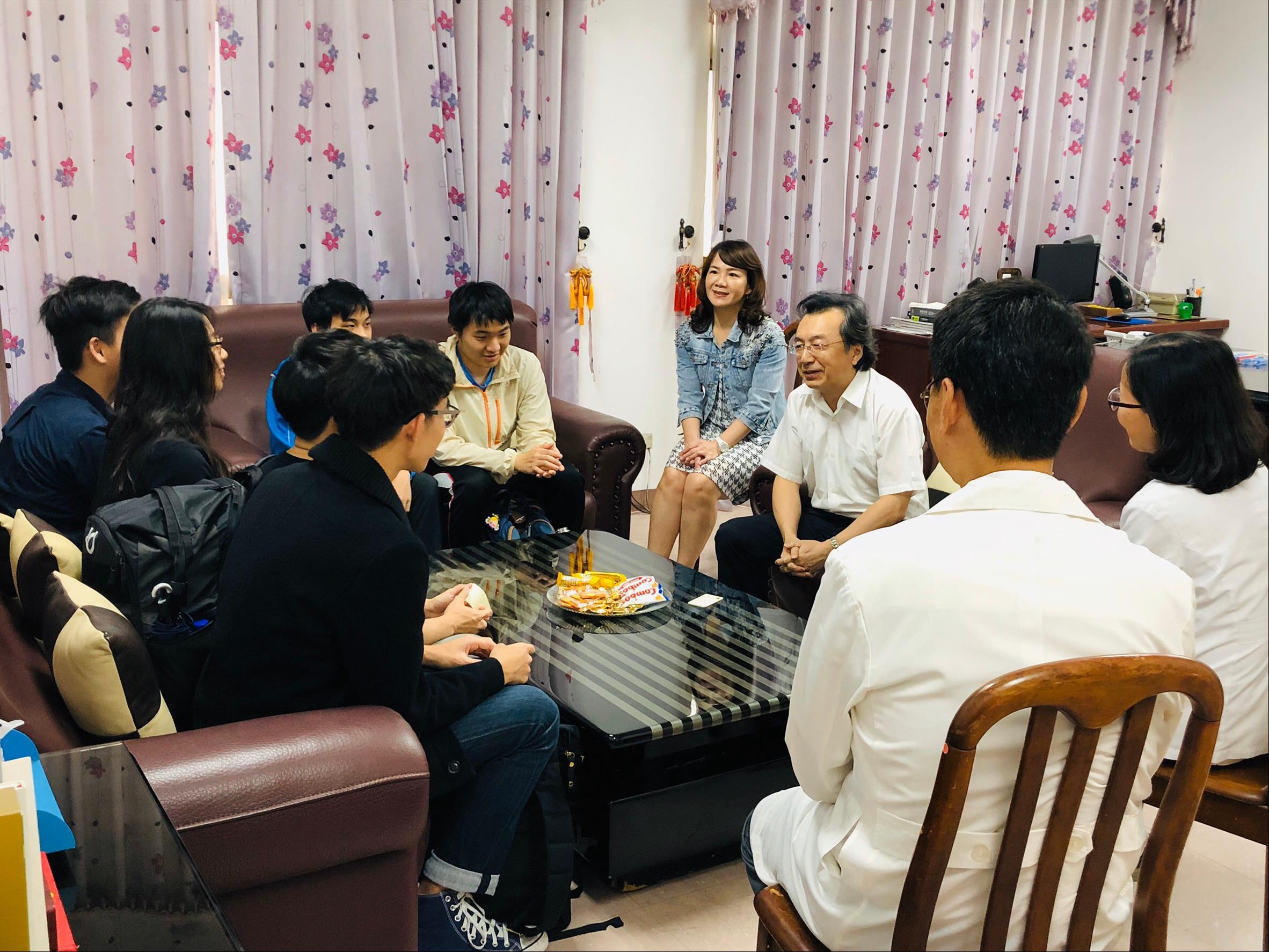 今年度(108)在仁愛之家大力支持下,附院得以與該社團再續前緣。11月20日下午,由王敬豪董事及林國慶家主任親自接待隊長陳岳昇同學及五位幹部,表達仁愛之家對於同學熱心公益的肯定與重視。除了提供同學們於活動期間可至養護中心住宿及相關日常所需之外,亦安排與附院工作人員進行商討109年1月14-21日的活動規劃,希望能滿足仁愛之家長輩、住民及病友的需求,以期活動順利圓滿。