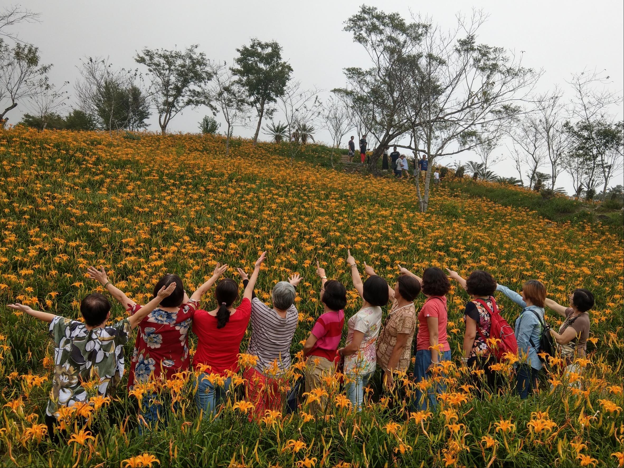 在陽光的照耀下伴著徐徐的涼風真的很舒服,大伙們一早就在鳳山火車站集合,上火車後大家你一言我一句,沿途欣賞南迴鐵路山海交錯的美景,很快就到太麻里了,轉乘巴士往太麻里的金針花海,秋天正是金針花盛開的季節,一下車整片金針花海映入眼簾,當了媽媽的大家也是整個少女心大發,開始擺起復古又時尚的姿勢拍起照來,張張都是網美照喔~好開心!