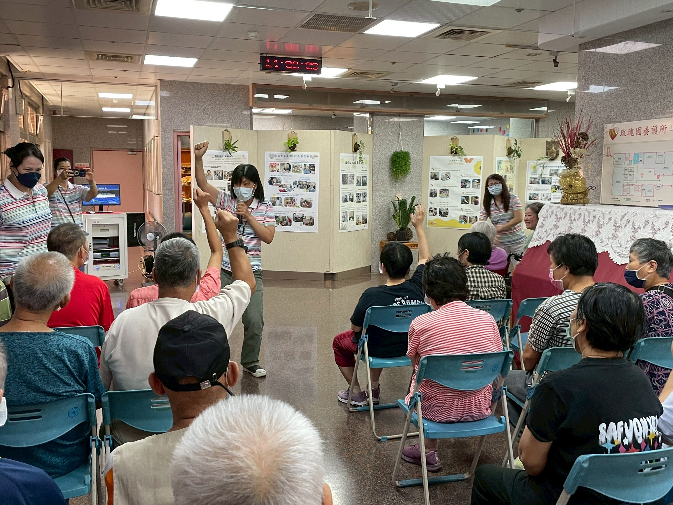 在年度ISP成果發表活動中,主任以問答互動的方式引導家友回顧成長歷程。 活動中,家友主動舉手、踴躍參與,充分展現了自信與學習成果。 此刻的笑容與掌聲,象徵著團隊與家友共同努力的最佳見證。