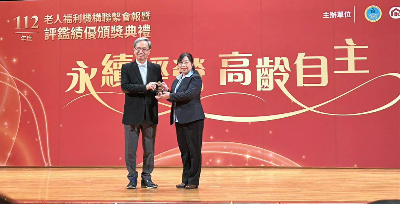 衛生福利部於112年12月25日於台北福華文教會館舉行全國財團法人老人福利機構評鑑績優頒獎典禮,本家慈愛老人安養護中心再度榮獲評鑑優等榮譽!在138家老人福利機構中,與群雄崢嶸,已經蟬連九次榮獲優等,代表著本家對老人養護用心經營,視長如親,認真負責的態度,獲得肯定。受新冠肺炎鋪天蓋地攪局,109年老人福利機構評鑑斷續展延至112年全數完成,優等者全國七家。當日由中心馬主任代表仁愛之家出席受獎,馬主任表示「即便111年已獲知優等,但當下仍有無比榮耀感及些許忐忑,從薛瑞元部長手中接遞獎盃之際,舞台前的燈光閃亮,腦子裡也頓然爆出火花~因應評鑑的記憶細胞復活了~很不真實的感受,那時那刻無論是辛勞的、高壓的記憶皆拋於腦後,活在當下欣然接受這份殊榮,然而心中清楚這獎盃是安養護團隊長期的努力成果,同時背負著長輩、家屬的殷殷期許及董事長、執行長對中心未來的藍圖期盼,更乘載本家的歷史榮耀」。